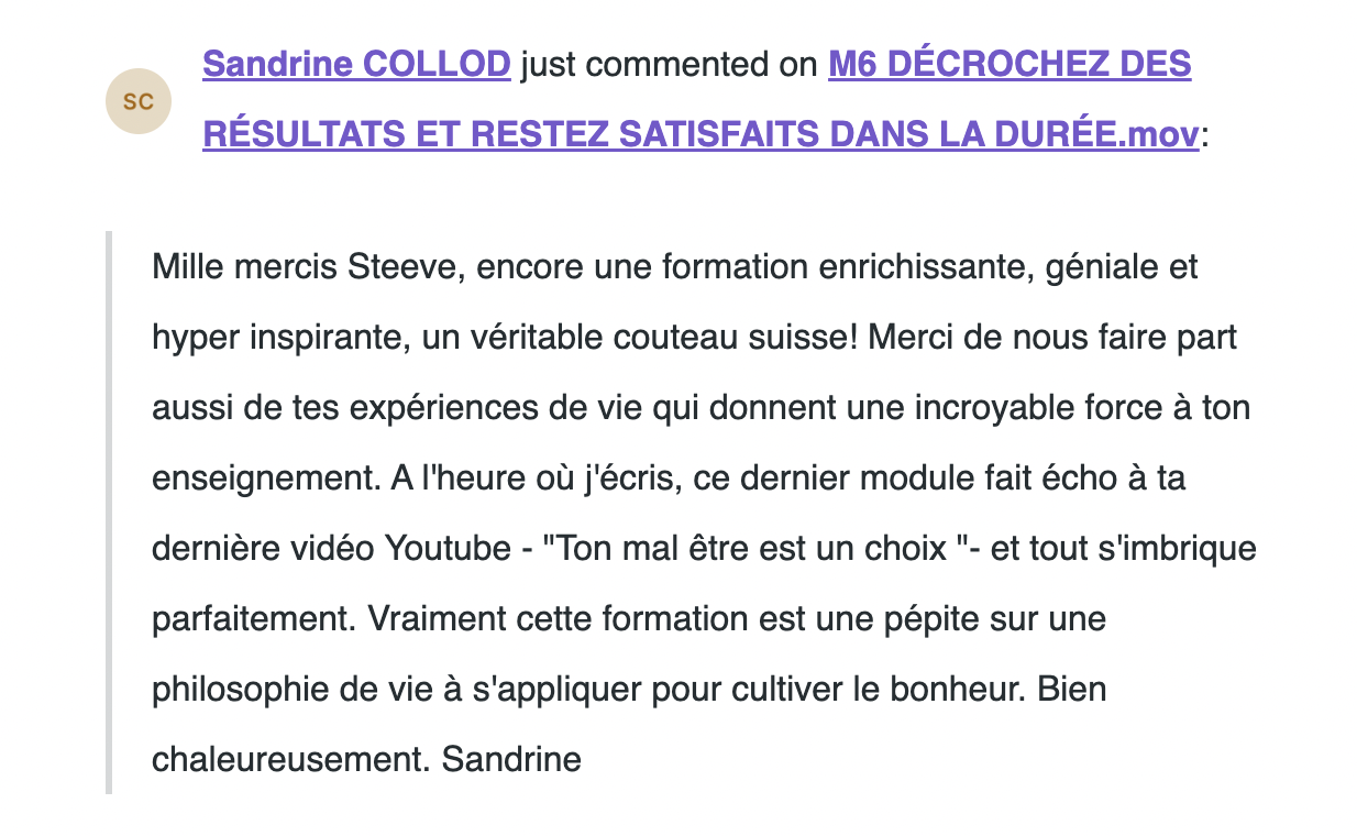 Tu vas pouvoir échanger directement avec moi, je répondrai à toutes tes questions sur le programme et tu recevras le soutien d'autres élèves qui ont choisi cette formule