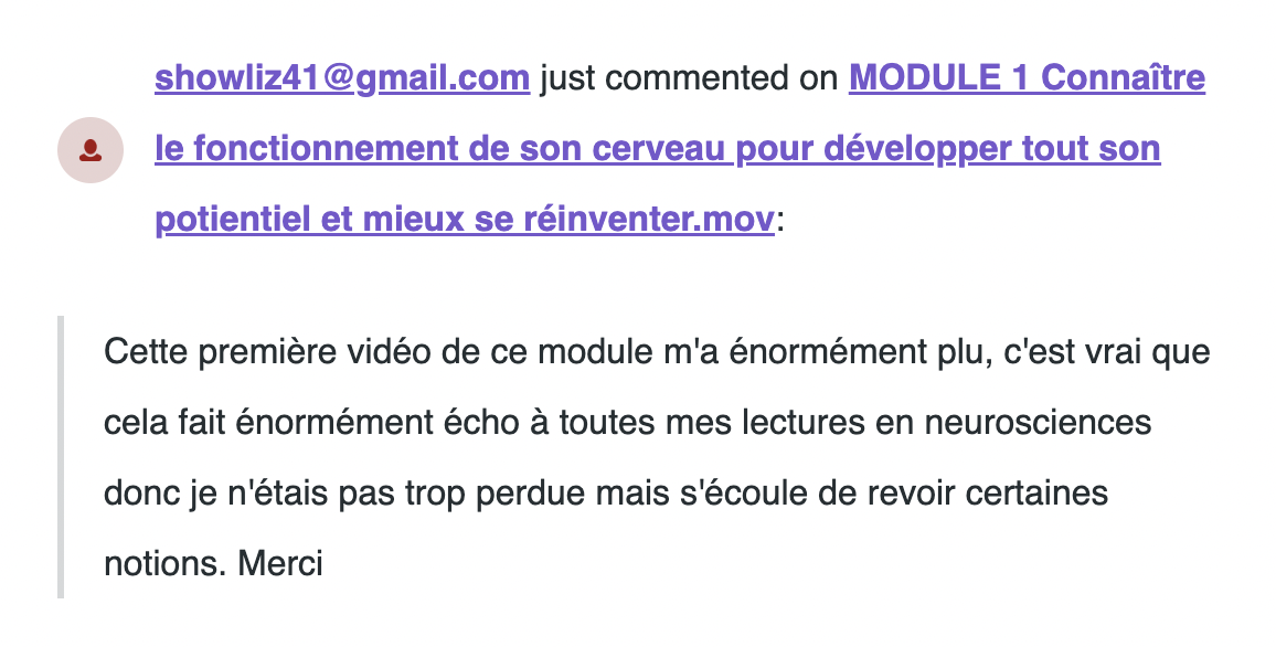 Tu conserveras ton accès à la formation à vie. Tu pourras la suivre et la suivre à nouveau, dès que tu en sentiras le besoin.