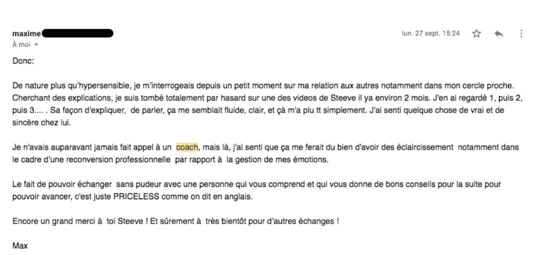 L'approche de Steeve est reconnue pour son expérience particulière.