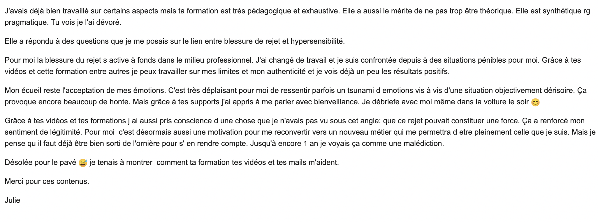 👉 Pour cela, il a fallu que je me serve de toutes mes expériences de rejet précédentes pour comprendre qu'il fallait orienter mon énergie à un endroit propice qui m'attendait depuis longtemps!