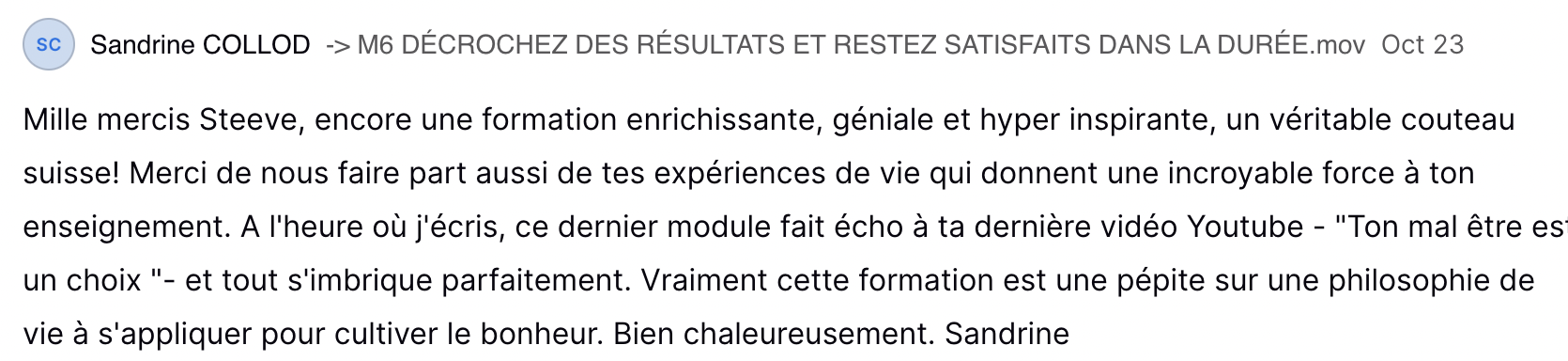 Tu conserveras ton accès à la formation à vie. Tu pourras la suivre et la suivre à nouveau, dès que tu en sentiras le besoin.