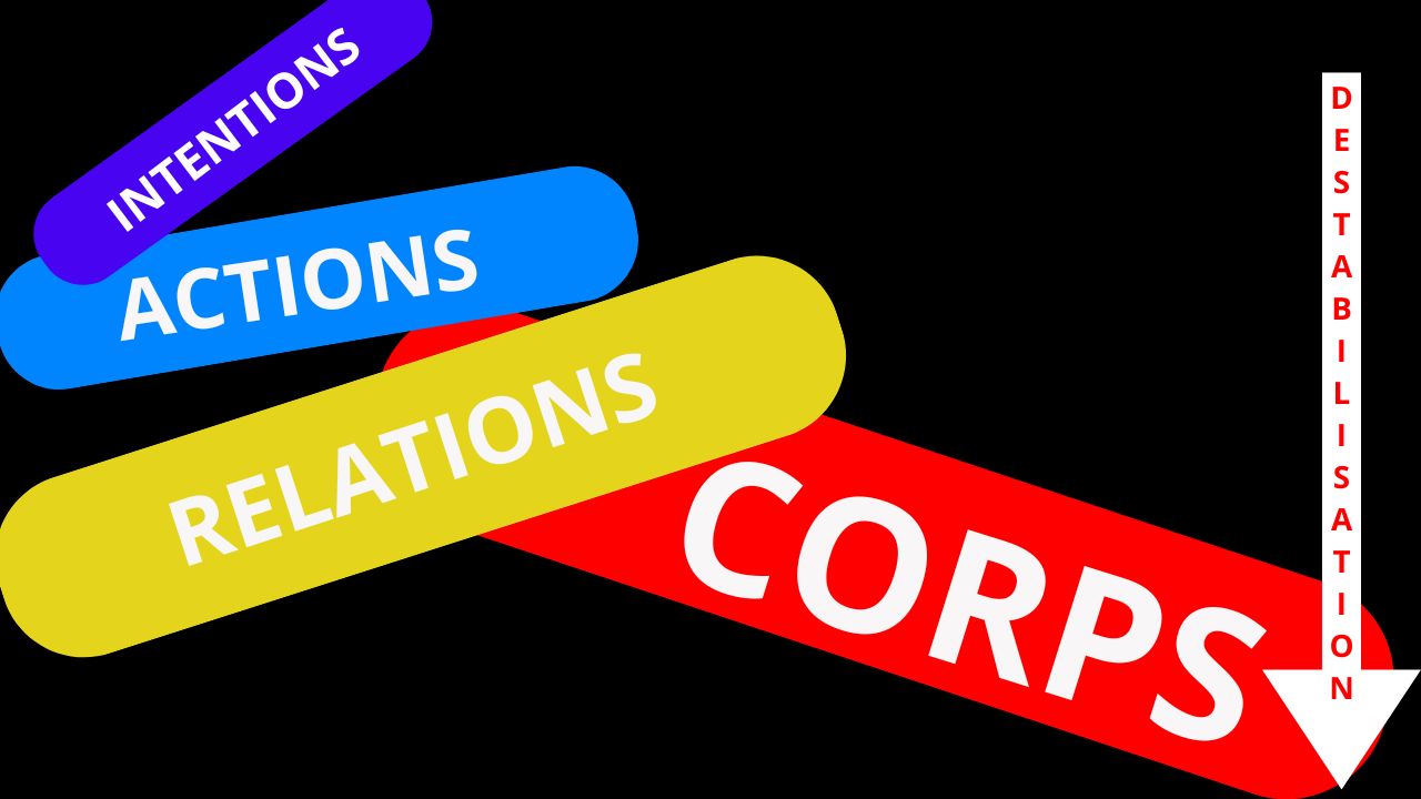 Toute ta stabilité va partir du corps et va progressivement nourrir toutes les autres couches de ton identité: ta manière de vivre sainement tes relations, ta capacité à agir et enfin tes intentions, le sens que tu trouves dans ta. vie c'est à dire la cohérence entre ce que tes actions et tes valeurs